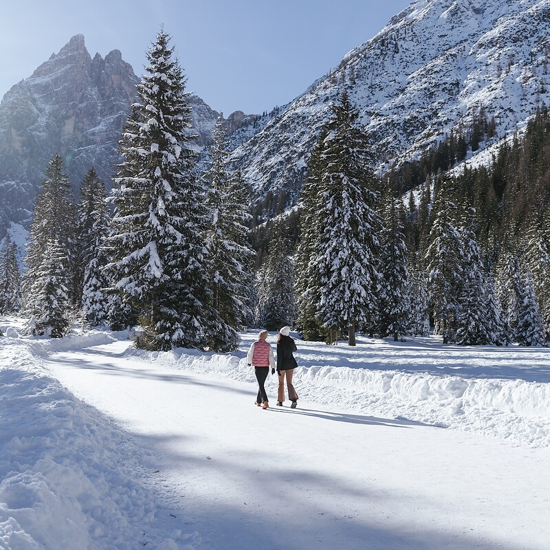Zu Fuß in die Winterwelt geht es auf dem Ritten oder in Jenesien. Warm eingepackt, in Stiefeln oder auf Schneeschuhen, lassen sich die Wälder und präparierten Winterwanderwege auf entschleunigende und leise Weise erkunden. Auf dem Rittner Horn stapfen Sie über Italiens ersten Winter-Premium-Weg mit 360° Traumausblick. Die Sonnenterrasse Jenesien steht Bozens Hausberg in Sachen Aussicht ebenfalls in nichts nach. Was auf keinen Fall fehlen darf: ein Panorama-Selfie und eine Genusspause am warmen Ofen der Hütten und Gasthäuser.