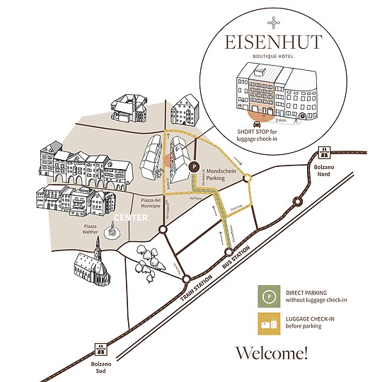 Zum Ausladen Ihres Gepäcks können Sie kurz direkt vor dem Hotel in der Fußgängerzone (Bindergasse 21) halten, bevor Sie anschließend zur Parkgarage Luna Mondschein weiterfahren.