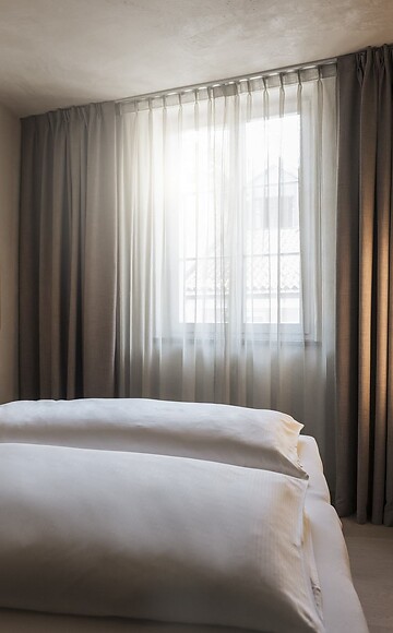 Ein Hauch von Eleganz macht sich in der Deluxe Suite breit, die Sie zu viert oder zu fünft zu Ihrem Zuhause auf Zeit machen können. Die Natur gibt mit Holz, Stoffen und Lehmverputze nicht nur im Inneren den Ton an, sie wartet auch auf dem Balkon mit Blick auf den begrünten Innenhof. Vom Fenster aus können Sie das Altstadttreiben in der historischen Bindergasse beobachten, als Rückzugsort wartet ein gemütlicher Wohnbereich mit stilvoller Lounge. Ideal für Familien und Freundesgruppen!