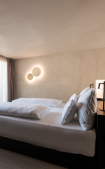 So vielversprechend der Name dieser Suite klingt, so märchenhaft schön ist es, sie zu bewohnen. Die Suite liegt exklusiv direkt unter der Mansarde, dort, wo der Blick ungestört über die Dächer Bozens schweift. Auf dem Balkon verfolgen Sie in Logenlage, wie die Abendstimmung die Berge des Rosengartens leuchten lässt, im Schlafzimmer tauchen Sie ins warme Wasser der freistehenden Badewanne ein. Edle Hölzer, Lehmverputze und warme Stoffe machen das Wohlfühlambiente für anspruchsvolle Paare perfekt.