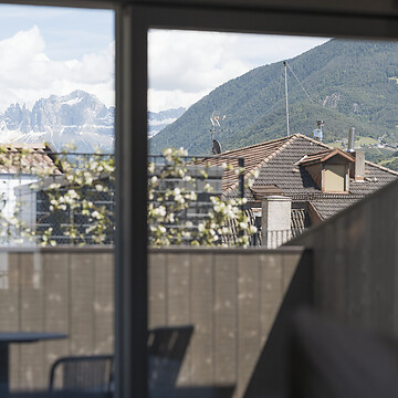 Comfort indoors, panoramic views outdoors: Our Eisenhut Suite welcomes you with elegant woods and warm fabrics. Unwind in the cosy corner or plan your next adventure while taking in views of the green courtyards or the rooftops of Bolzano. The desire for the next adventure will stir within you! Bring your favourite person and settle into your holiday home à la Eisenhut.