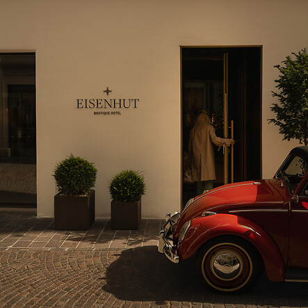 All’esterno, una facciata storica sotto tutela. All’interno, un’anima moderna. Fuori, la vivacità del centro storico. Dentro, angoli di pace e relax. Davanti, un’accogliente lounge e bar per rifocillarsi. Sul retro, una sala fitness e pilates per ricaricarsi. L’Eisenhut Boutique Hotel è un luogo di contrasti armoniosi. Nel nostro Design Hotel nel cuore di Bolzano, pareti naturali e pavimenti alla veneziana si fondono con dettagli contemporanei e bagni open-space. Quattro cortili interni portano la luce del sole dentro l’edificio, mentre la natura fiorisce sui balconi. Ovunque guardiate, troverete angoli curati nei minimi dettagli: perfetti per sognare ad occhi aperti, immergersi in un buon libro o lavorare in un’atmosfera stimolante. All’Eisenhut Boutique Hotel, vi sentirete come in un’oasi naturale immersa nella città. Ma, soprattutto, vi sentirete a casa.